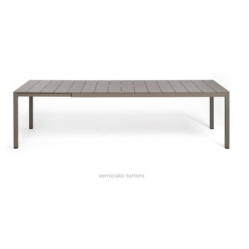 Mesa extensible de 210 a 280 cm, con patas regulables, acabado mate.