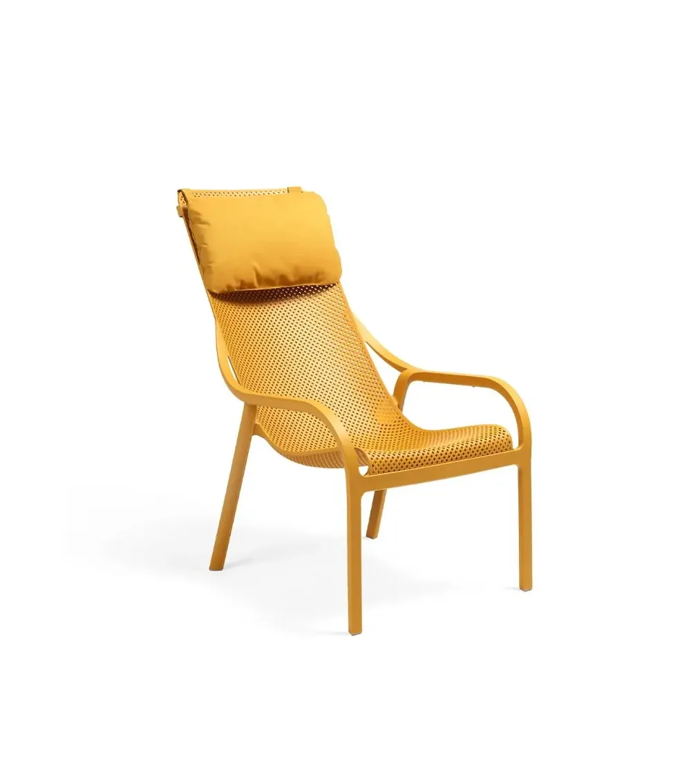 El cojín Net Lounge de Nardi es un reposacabezas (no desenfundable) fabricado a medida para complementar el sillón Net Lounge, mejorando notablemente la comodidad durante los momentos de relax al aire libre. Su diseño específico se adapta perfectamente a la forma del respaldo, ofreciendo un apoyo suave y ergonómico para la cabeza y el cuello.