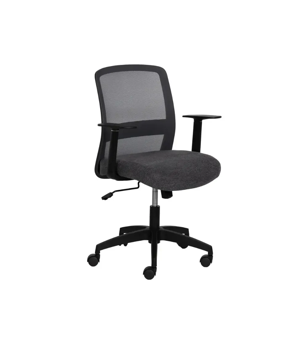 Materiales: Asiento y respaldo en tejido 100% poliester. Mecanismo de hierro y base de nylon.