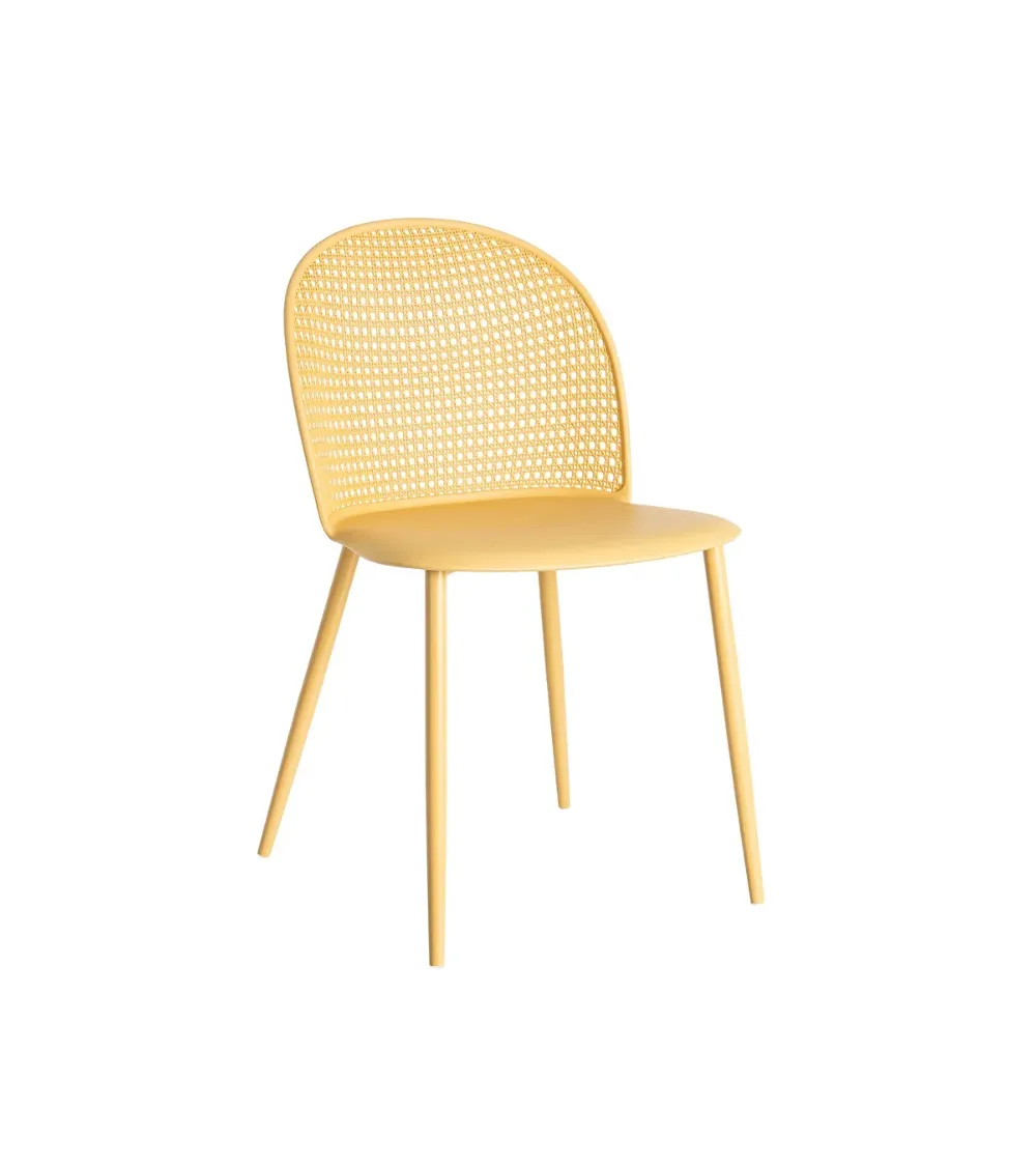 La Silla Calio es una pieza versátil y moderna que aúna diseño, confort y durabilidad. Su estética minimalista con respaldo de rejilla y acabado en color caqui aporta un toque natural y contemporáneo a cualquier ambiente, tanto para comedor como cocina, siendo también apta para el uso en exterior.