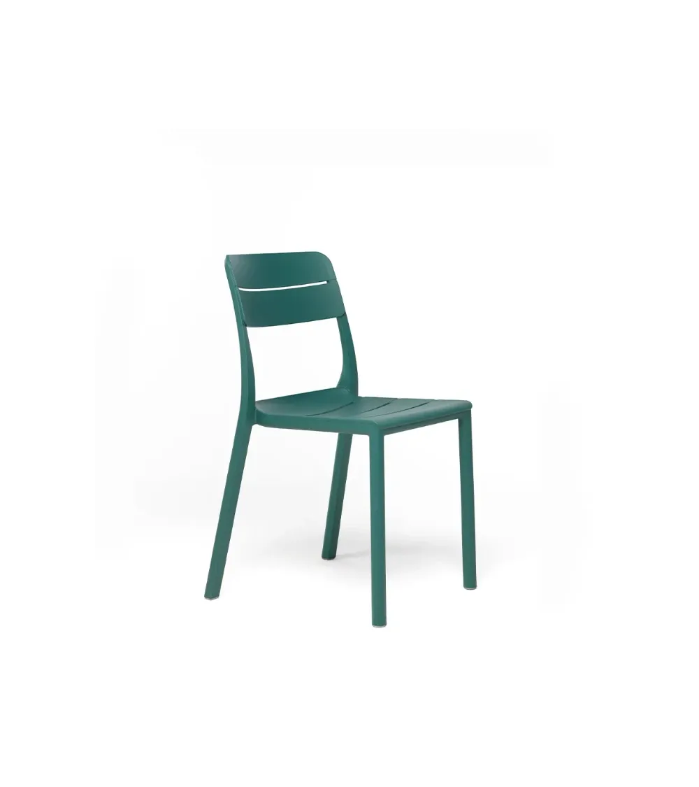 La Silla Cassia Bistrot de Nardi es una pieza monobloque sin reposabrazos, fabricada en polipropileno fiberglass tratado anti-UV y teñido en masa con acabado mate.