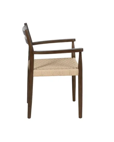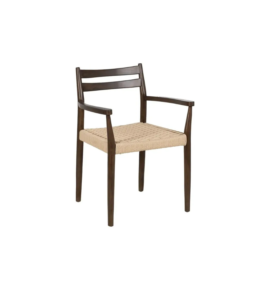 Pensada para ofrecer comodidad, cuenta con un respaldo ergonómico y reposabrazos integrados. Su diseño es funcional y versátil, adaptándose a diferentes estilos decorativos mientras aporta un aire fresco y natural al ambiente.