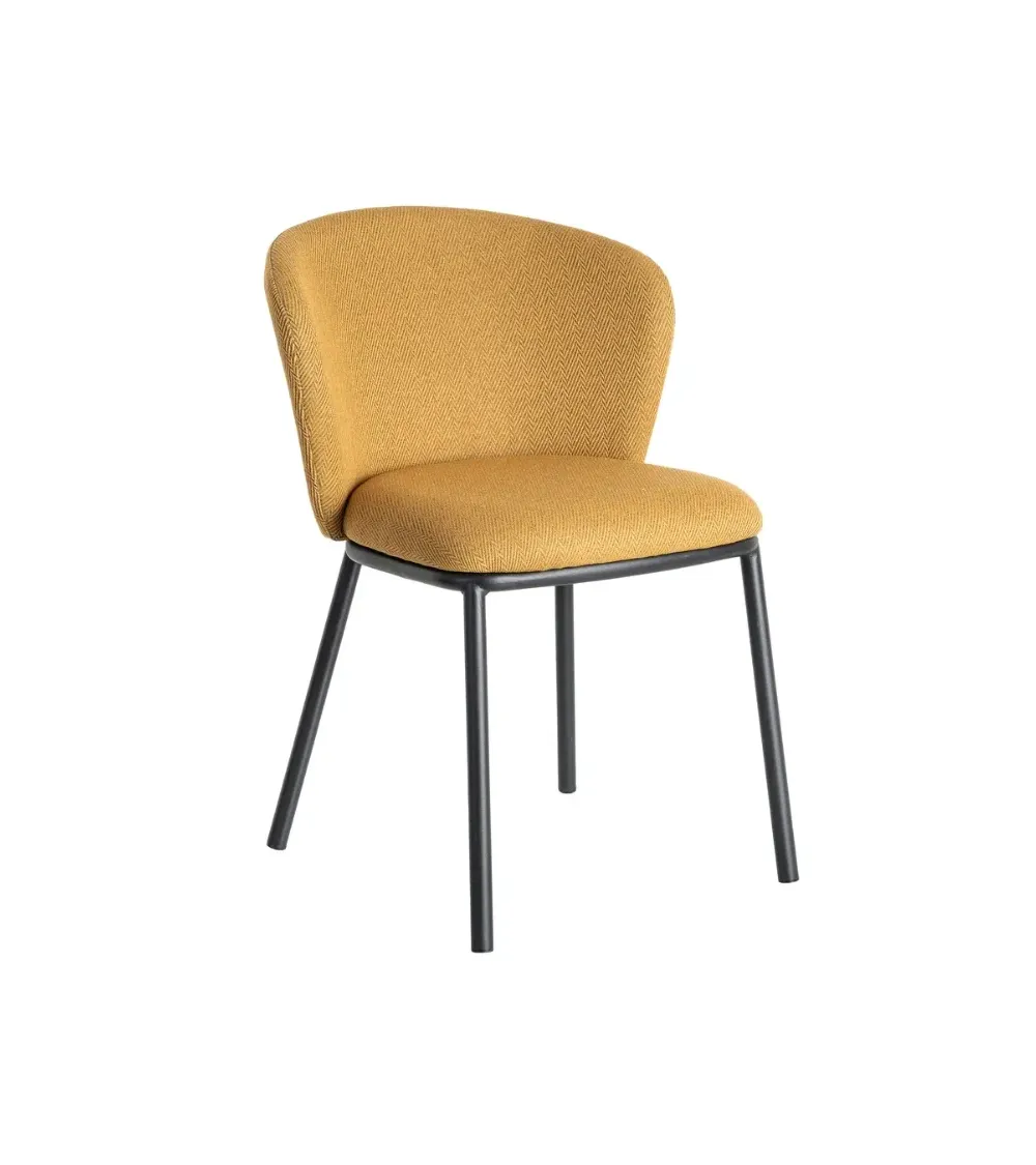 La Silla Espiga es una pieza versátil y moderna que combina diseño funcional y estilo escandinavo. Su estructura metálica en acabado negro aporta estabilidad y resistencia, mientras que su tapizado en tejido de alta calidad añade un toque cálido y sofisticado a cualquier espacio del hogar.