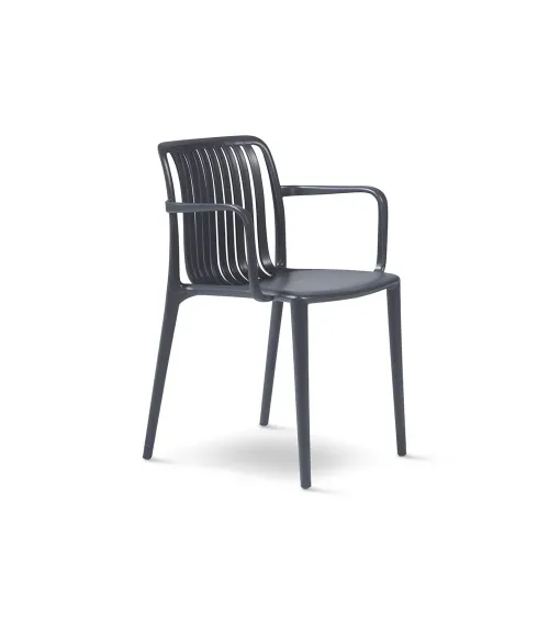 ArkimuebleLa Silla Gante de Arkimueble es una silla con brazos, ligera y resistente, ideal para terrazas, jardines y espacios contract. Fabricada en polipropileno taupé con tratamiento UV, es apilable y fácil de mantener.