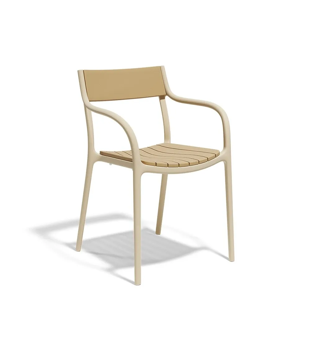 Su estructura de resina con lamas curvas ofrece comodidad ergonómica y una estética refinada ideal para interiores y exteriores. Un diseño moderno que redefine la funcionalidad con estilo. Además es apilable hasta en 8 unidades.