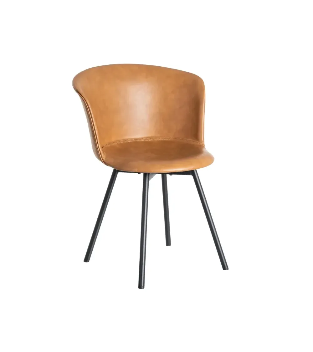 La Silla Naura es una pieza moderna y versátil que eleva el estilo de cualquier espacio gracias a su atractivo diseño y materiales de alta calidad. Fabricada con una estructura de polipropileno resistente, patas metálicas y un asiento tapizado en símil piel color camel o marrón, esta silla destaca por su comodidad y su estética cálida y contemporánea.