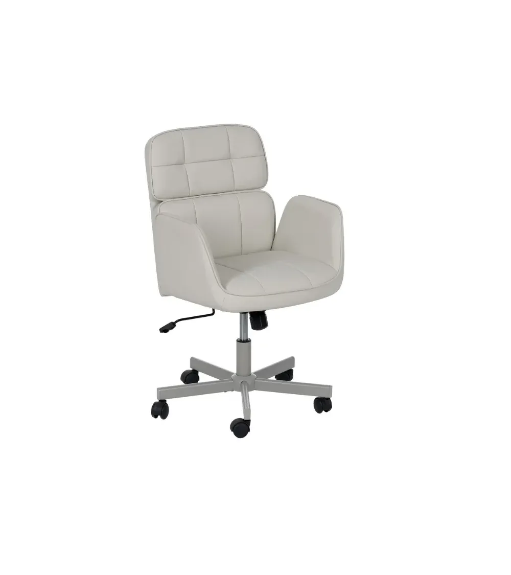 La silla de escritorio Tilva destaca por su estilo sofisticado y gran comodidad. Tapizada en simil piel color crema, combina suavidad y resistencia con un acolchado ergonómico que ofrece un soporte ideal para largas jornadas de trabajo.
